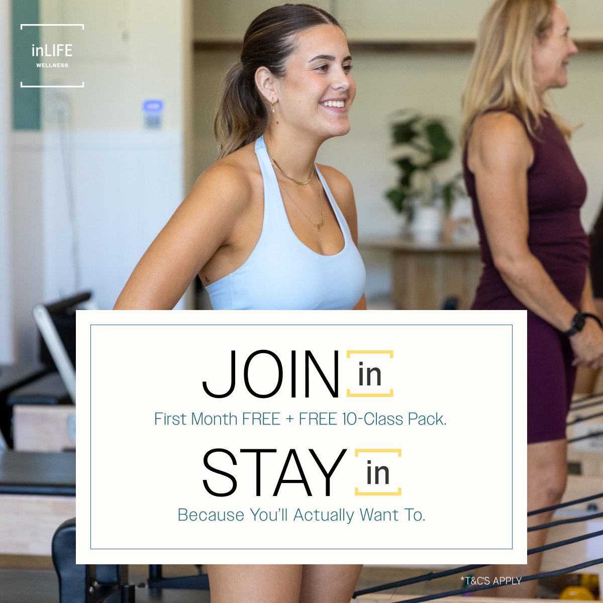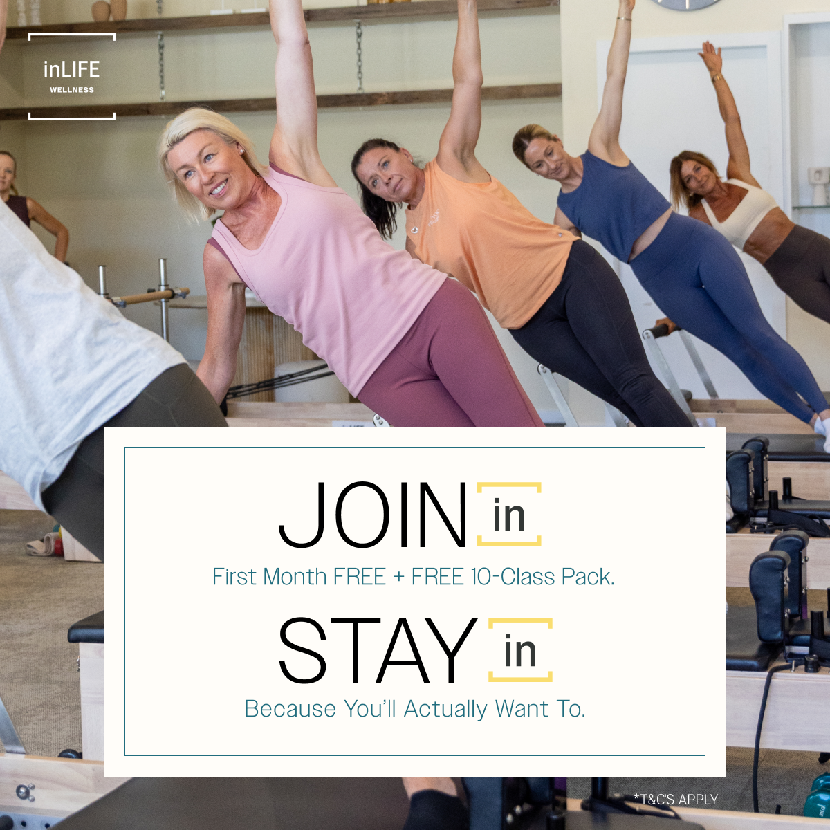JOIN [in]. STAY [in]. with expert coaching, a supportive community, and feel-good classes that deliver results.